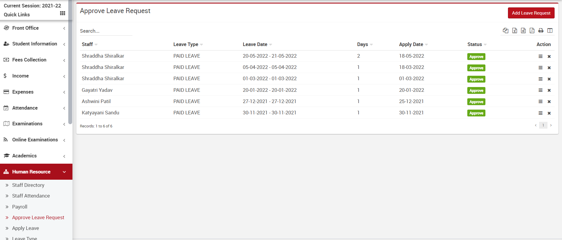 Staff Attendance management with the different status like Present, Late, Absent, Half Day