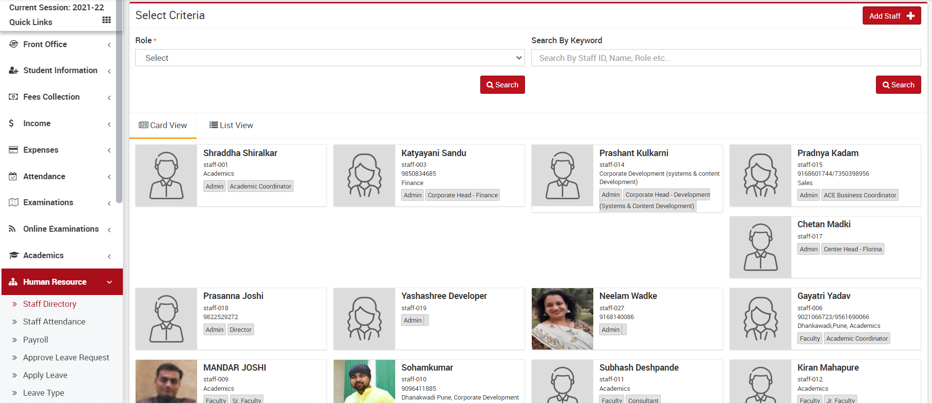 Staff Attendance management with the different status like Present, Late, Absent, Half Day